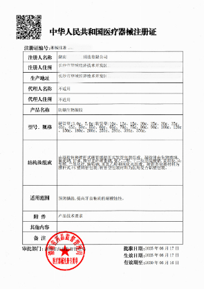 《防龋生物凝胶》二类注册证:预防龋齿,提高牙齿釉质的耐酸蚀性。