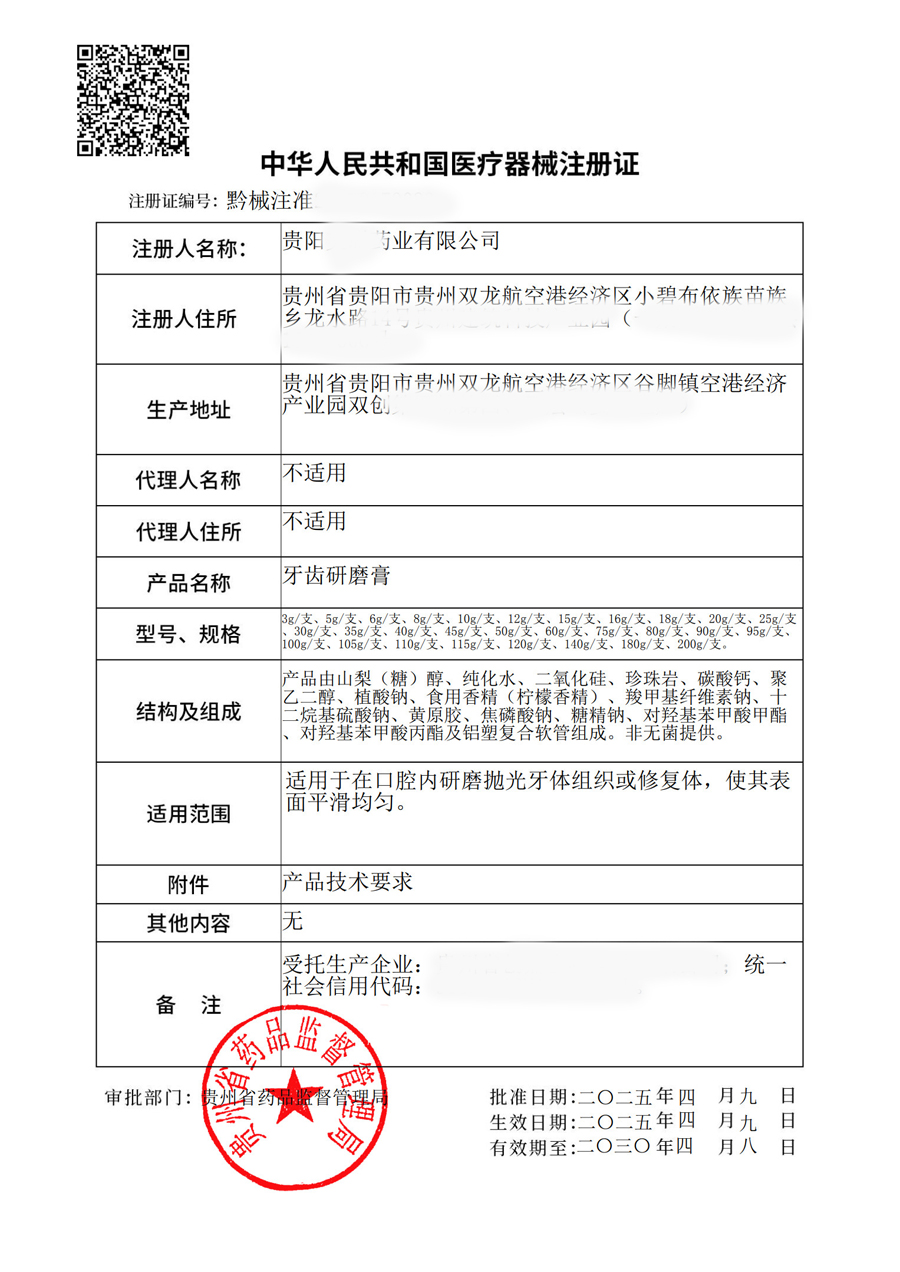 | 结构及组成/主要组成成分: | 产品由山梨(糖)醇、纯化水、二氧化硅、珍珠岩、碳酸钙、聚乙二醇、植酸钠、食用香精(柠檬香精)、羧甲基纤维素钠、十二烷基硫酸钠、黄原胶、焦磷酸钠、糖精钠、对羟基苯甲酸甲酯、对羟基苯甲酸丙酯及铝塑复合软管组成。非无菌提供。 |