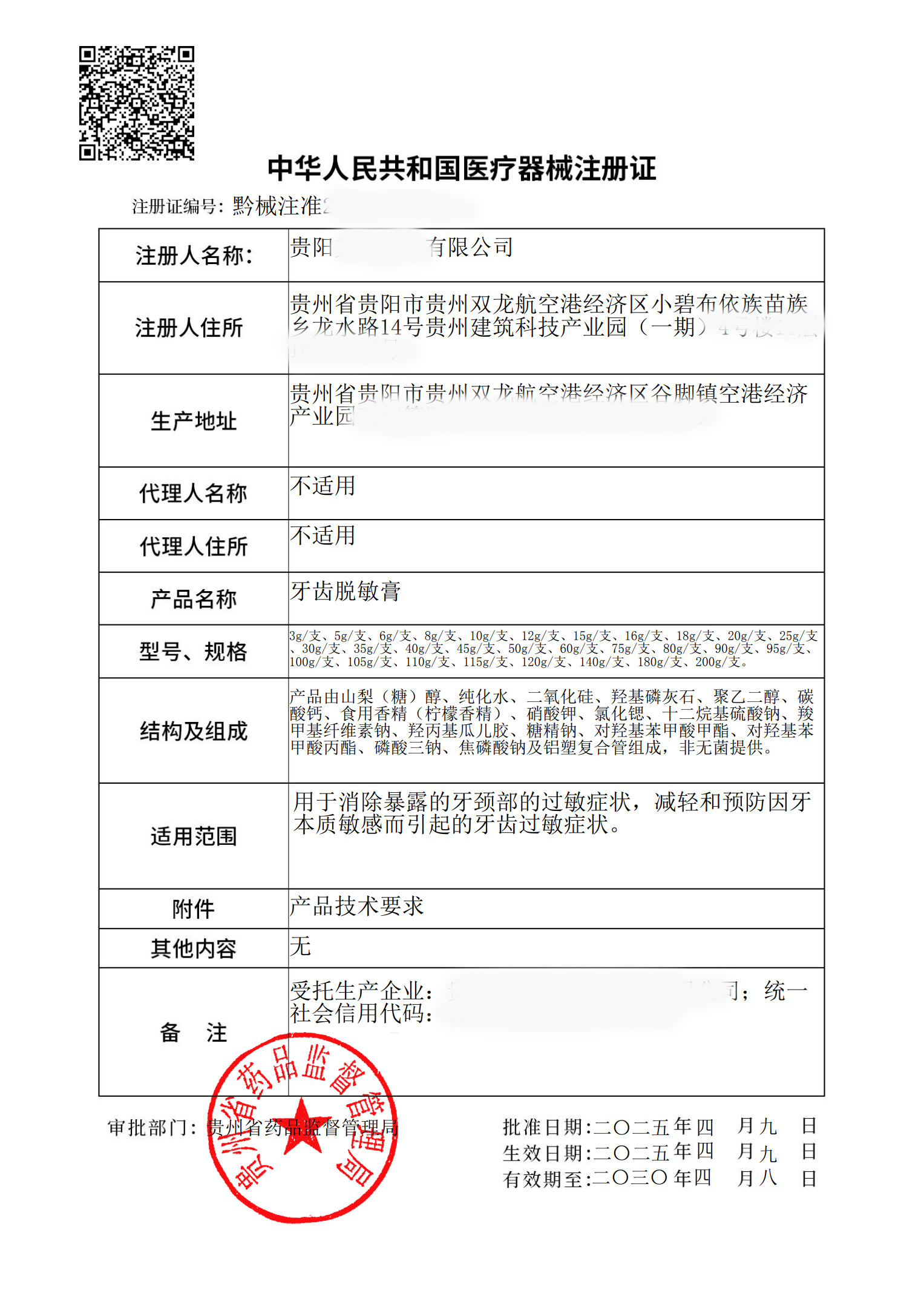 | 办证机构: | 贵州省药监局 |