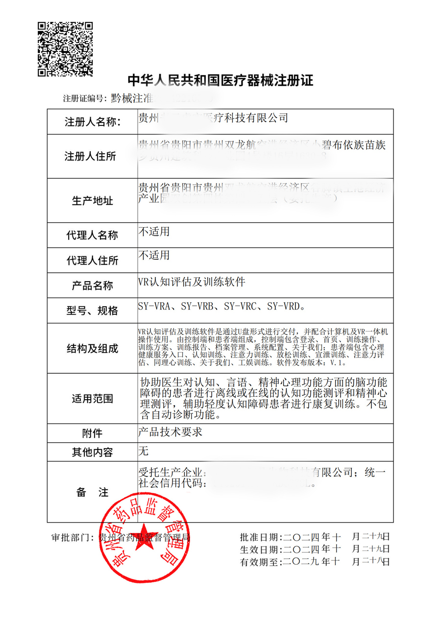 | 产品名称: | VR认知评估及训练软件 |